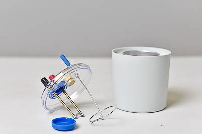 Прозрачная крышка имеет отверстия для размещения нагревательного элемента, мешалки и термометра. Съемный спиральный нагревательный элемент вмонтирован в крышку и работает от 0 до 6 В постоянного тока.