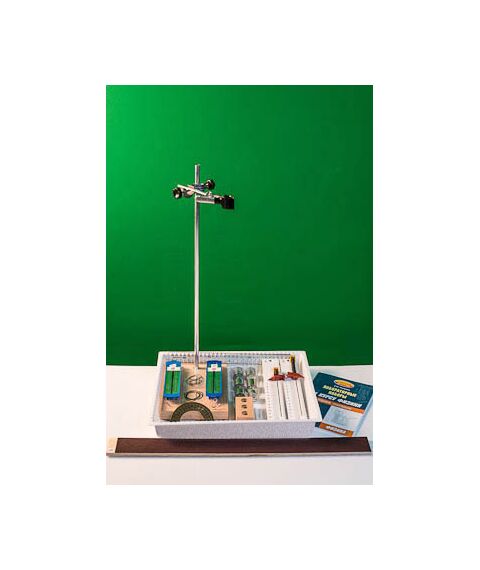 Состав комплекта: штатив лабораторный с держателями (основание из бука, стойка алюминиевая длиной 50 см, диаметром 10 мм, муфта - 1 шт, лапка - 1 шт.) - 1 шт., динамометр № 1 планшетный, предел измерения 1 Н (цена деления 0,02 Н) - 1 шт., динамометр № 2 планшетный, предел измерения 5 Н (цена деления 0,1 Н) - 1 шт., пружина № 1 на планшете с миллиметровой шкалой, с сантиметровой оцифровкой (с крючком для подвешивания грузов, пластиковым указателем растяжения по шкале и пластиковым стержнем для крепления в муфте штатива), жёсткость (50±2) Н/м - 1 шт., пружина № 2 на планшете с миллиметровой шкалой, с сантиметровой оцифровкой (с крючком для подвешивания грузов, пластиковым указателем растяжения по шкале и пластиковым стержнем для крепления в муфте штатива), жёсткость (10±2) Н/м - 1 шт., грузы № 1, № 2, № 3, массой по (100±2) г - 3 шт., груз № 4 диаметром 25 мм, массой (60±1) г - 1 шт., груз № 5 диаметром 25 мм, массой (70±1) г - 1 шт., груз № 6 диаметром 25 мм, массой (80±1) г - 1 шт., линейка длиной 300 мм с миллиметровыми делениями - 1 шт., транспортир - 1 шт., брусок (изготовлен из бука, имеет по 3 отверстия с двух сторон) с двумя крючками, масса бруска m = (50±5) г - 1 шт., нить длиной 50 см - 2 шт., направляющая длиной 550 мм, шириной 50 мм и толщиной 9 мм - 1 шт., лоток пластиковый размером 340*270*55 мм - 1 шт., учебное пособие «Лабораторные наборы по курсу физики» (автор Е.Ю. Косарева – 68 страниц – печать офсетная, обложка полноцветная) – 1 шт., руководство по эксплуатации - 1 шт.