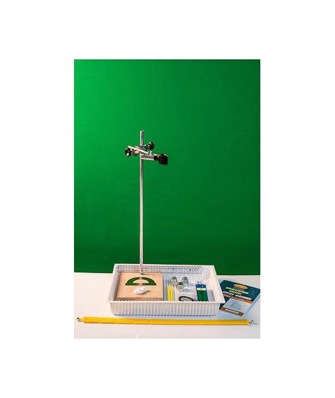 Состав комплекта: штатив лабораторный с держателями (основание из бука, стойка алюминиевая длиной 50 см, диаметром 10 мм, муфта - 1 шт, лапка - 1 шт.) - 1 шт., рычаг пластиковый (длина 535 мм, с креплениями для грузов: четыре крючка и по восемь отвертий с каждой стороны) - 1 шт., стержень пластиковый для крепления рычага в муфте штатива - 1 шт., блок подвижный диаметром 35 мм - 1 шт., блок неподвижный диаметром 35 мм - 1 шт., нить длиной 150 см - 1 шт., грузы массой по (100±2) г каждый - 3 шт., динамометр планшетный, предел измерения 5 Н, цена деления 0,1 Н - 1 шт., линейка длиной 300 мм с миллиметровыми делениями - 1 шт., траснпортир - 1 шт., лоток пластиковый размером 340*270*55 мм - 1 шт., учебное пособие «Лабораторные наборы по курсу физики» (автор Е.Ю. Косарева – 68 страниц – печать офсетная, обложка полноцветная) – 1 шт., руководство по эксплуатации - 1 шт.