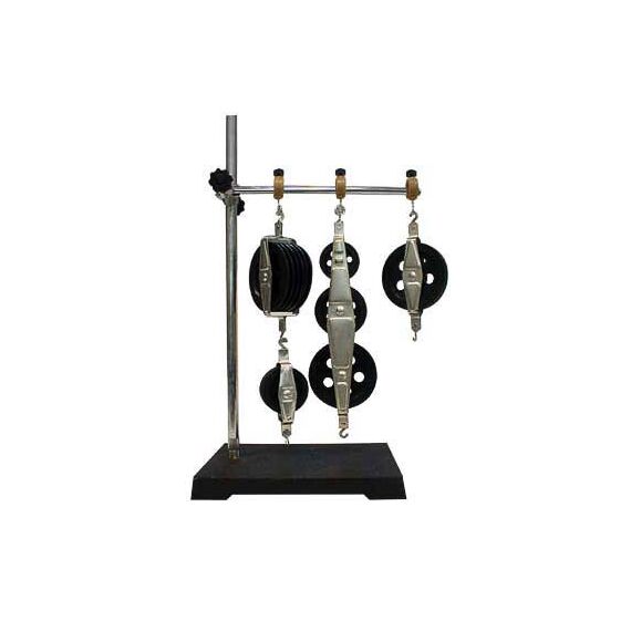 Блоки снабжены крючками для сборки механизмов и установки на штативе. Комплект позволяет демонстрировать свойства подвижного и неподвижного блоков, свойства системы из таких блоков.