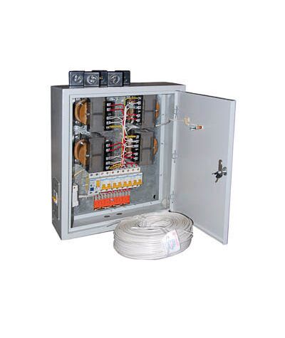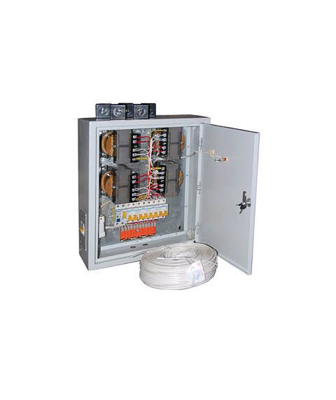 В комплект входят: щит распределительный в упаковке (с паспортом) – 1 шт., розетка электрическая 42 В – 16 шт., провод электрический – 100 м., коробка для провода и розеток – 1 шт., руководство по эксплуатации – 1 шт.