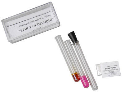 Комплектность: пробирки стеклянные 14*120 мм с веществами желтого и розового цвета (канифоль и парафин) и пустая – 3 шт., пробка – 1 шт., пакет с кристаллами серноватистокислого 5-водного натрия – 1 шт., руководство по эксплуатации – 1 шт.