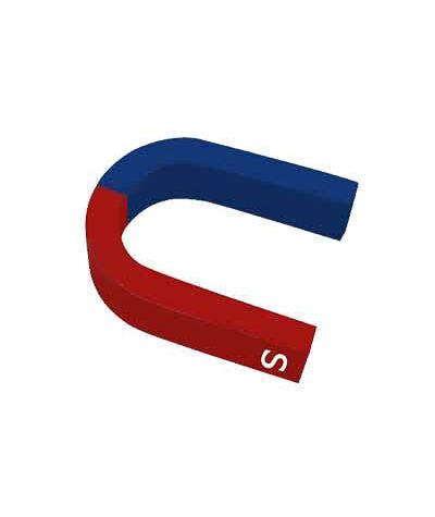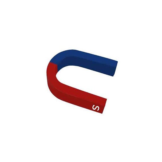 Магнит U-образной формы изготовлен из полосовой стали. Половины магнита окрашены в разные цвета. Разноименные полюса магнитов замкнуты стальной пластиной.