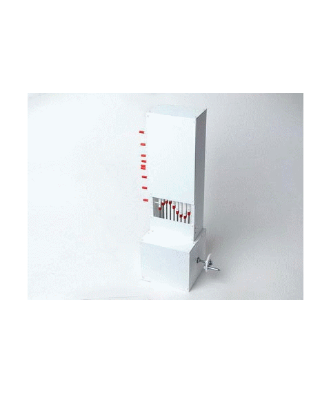 Корпус изделия изготовлен из пластика, внутри размещен эксцентриковый механизм. Прибор дает возможность продемонстрировать: колебания одной частицы, колебания двух частиц с разными фазами, колебания двух частиц в противофазе, колебания двух частиц в одной фазе, поперечную бегущую волну, продольную бегущую волну.