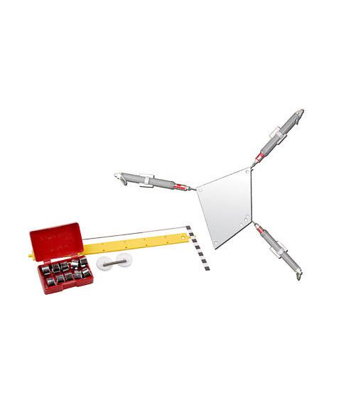 Центральное отверстие пластины расположено в центре ее масс. Динамометры на магнитных держателях закреплены так, что могут свободно поворачиваться. У динамометров предусмотрен винт установки нуля. В зависимости от положения динамометра необходимо устанавливать ноль перед каждым опытом. Для проведения демонстраций необходима магнитная доска.