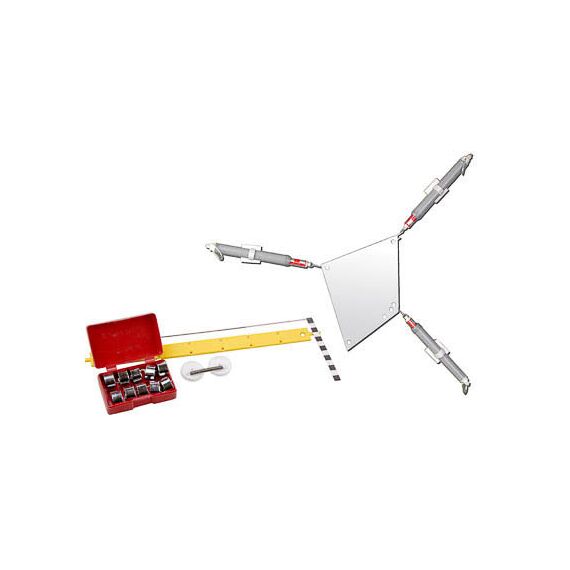 Комплектность: динамометры (5 Н) на магнитных держателях – 3 шт., магнитные держатели с трубками на концах – 2 шт., блоки – 2 шт., грузы (50 г) – 10 шт., пластина неправильной формы (50 г) с отверстиями – 1 шт., рычаг-линейка – 1 шт., угольник для измерения плеч – 1 шт., пружина – 1 шт., отвес – 1 шт., нить с петлями на концах – 1 шт., нить с петлями на концах и в середине – 1 шт., руководство по эксплуатации – 1 шт.
