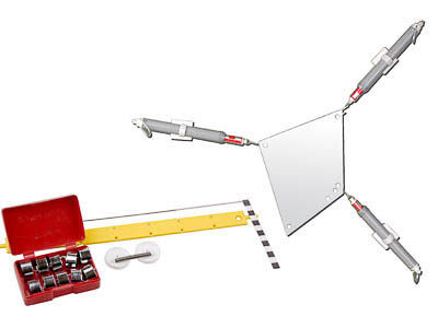 Центральное отверстие пластины расположено в центре ее масс. Динамометры на магнитных держателях закреплены так, что могут свободно поворачиваться. У динамометров предусмотрен винт установки нуля. В зависимости от положения динамометра необходимо устанавливать ноль перед каждым опытом. Для проведения демонстраций необходима магнитная доска.