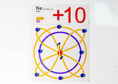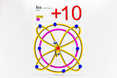 Модель дает возможность условно показать последовательную разницу в электронном строении первых десяти элементов периодической системы