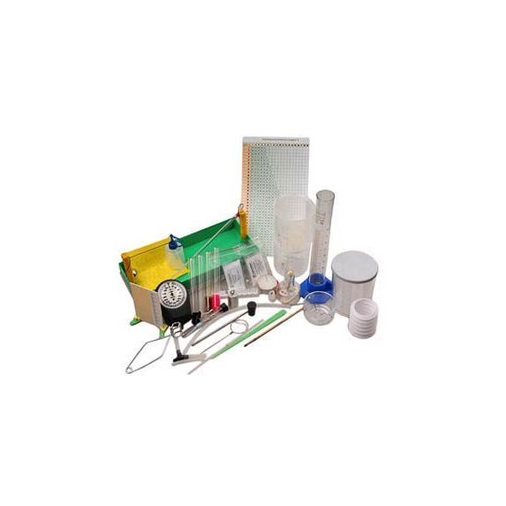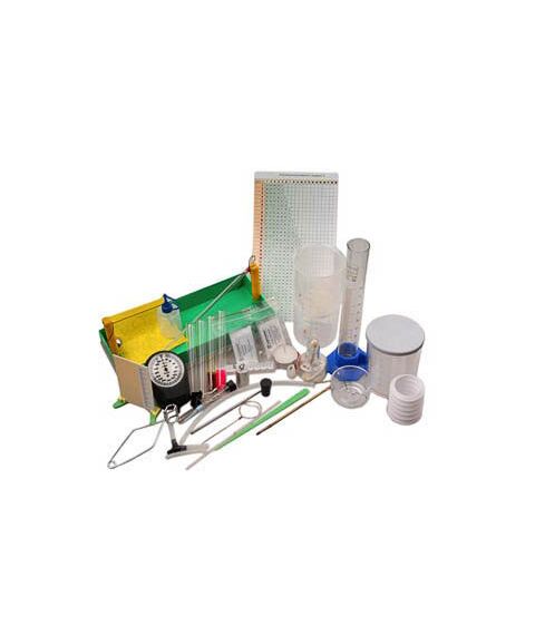 Комплектность: коробка-основание – 1 шт., профильные стойки – 2 шт., стержень металлический – 2 шт., прямоугольная пластмассовая пластина со шкалой – 1 шт., треугольная подставка для пластины – 1 шт., прозрачная полиэтиленовая трубка – 1 шт., стрелка – 1 шт., гвоздик для крепления стрелки – 1 шт., металлическая проволока – 1 шт., колок для крепления проволоки – 1 шт., коробочка с вазелином – 1 шт., свеча – 1 шт., свеча-таблетка – 1 шт., подставка под свечу-таблетку – 1 шт., пробирки пустые стеклянные – 3 шт., пробирка стеклянная с канифолью (2 г) – 1 шт., пробирка стеклянная с парафином (2 г) – 1 шт., пробка для малой пробирки с отверстием – 1 шт., пробка для большой пробирки – 1 шт., зажим пробирочный – 1 шт., зажим канцелярский – 1 шт., натрий серноватистокислый (10 г) – 1 шт., хлорид аммония (10 г) – 1 шт., пластиковый сосуд (объем 40 мл) –1 шт., манометр – 1 шт., шприц (объем 10 мл) с оцифрованной шкалой – 1 шт., тройник – 1 шт., трубка силиконовая (O = 4 мм, L = 250 мм) – 1 шт., трубки силиконовые (O = 4 мм, L = 40 мм) – 2 шт., трубка силиконовая (O = 3 мм, L = 50 мм) – 1 шт., пластиковая чаша с металлической петлей – 1 шт., шарик металлический с магнитным подвесом – 1 шт., алюминиевый цилиндр – 1 шт., термометр (0–100 С) – 1 шт., спиртовка – 1 шт., салфетка впитывающая – 1 шт., мерный цилиндр (объем 100 мл) – 1 шт., стаканы (объем 250 мл) со шкалой – 2 шт., калориметр – 1 шт., резиновый шнур с петлей на конце – 1 шт., скрепки канцелярские – 6 шт., проволочное кольцо с нитью – 1 шт., психрометрическая таблица – 1 шт., учебное пособие «Лабораторные наборы по курсу физики» (автор Е.Ю. Косарева – 68 страниц – печать офсетная, обложка полноцветная) – 1 шт., руководство по эксплуатации – 1 шт.