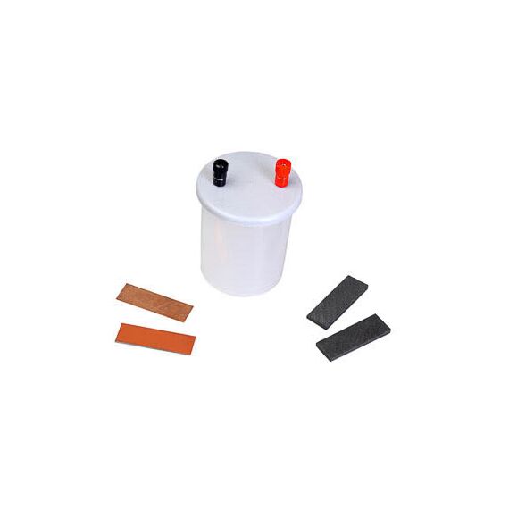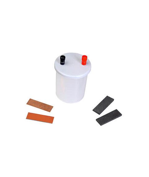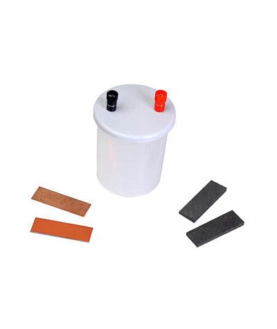 Комплектность: пластмассовый сосуд с двумя универсальными зажимами в крышке – 1 шт., электроды из графита – 2 шт., электрод цинковый – 1 шт., электрод медный – 1 шт., руководство по эксплуатации – 1 шт.