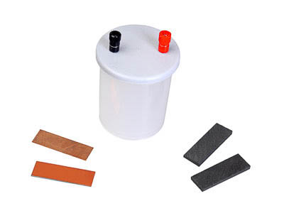 Комплектность: пластмассовый сосуд с двумя универсальными зажимами в крышке – 1 шт., электроды из графита – 2 шт., электрод цинковый – 1 шт., электрод медный – 1 шт., руководство по эксплуатации – 1 шт.
