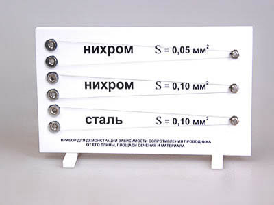 Прибор предназначен для демонстрации зависимости сопротивления проводника от его длины, площади поперечного сечения и материала.