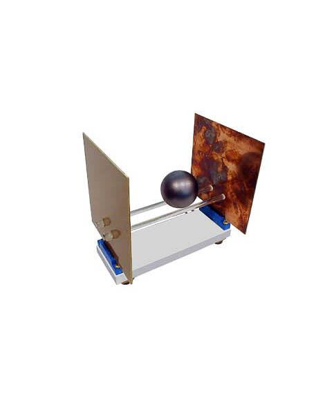 Прибор состоит из платформы на приборных ножках с токоподводящими контактами, двух съемных пластин из одностороннего фольгированного стелотекстолита, между которыми устанавливаются стеклянные «рельсы», и легкого пластмассового шарика, покрытого графитом. На пластины через разъемы-слоты и контакты подается постоянное высокое напряжение.