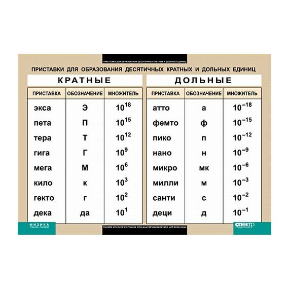 Наличие товара Приставки для образования десятичных кратных и дольных единиц (винил)