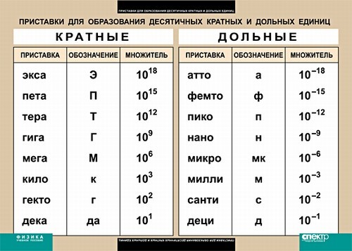 Описание Приставки для образования десятичных кратных и дольных единиц (винил)