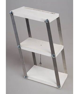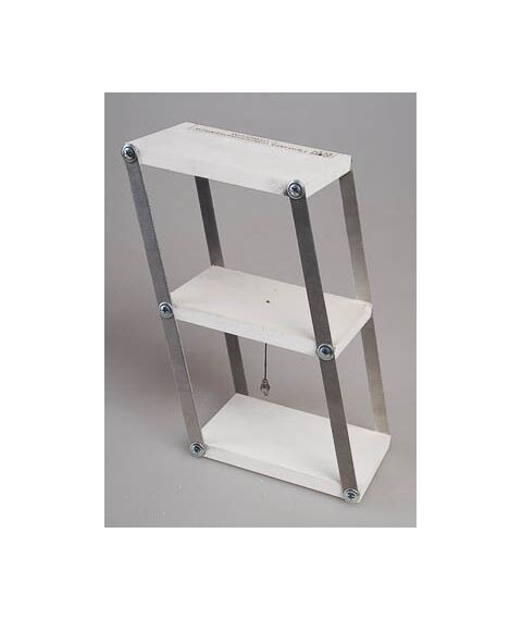 Призма состоит из 3-х прямоугольных пластин, подвижно соединенных по углам рейками. Представляет собой модель однородного тела с меняющейся формой. В центре тяжести имеется отвес.
