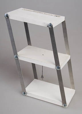 Призма состоит из 3-х прямоугольных пластин, подвижно соединенных по углам рейками. Представляет собой модель однородного тела с меняющейся формой. В центре тяжести имеется отвес.