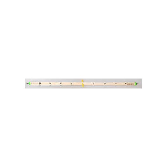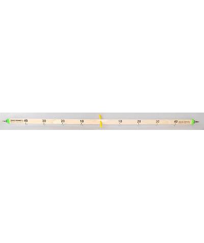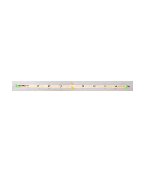 Рычаг представляет собой линейку длиной 800 мм, на которую нанесена оцифрованная шкала. Под оцифровкой через каждые 5 см на линейке установлены крючки для подвешивания грузов. На торцах линейки имеются винты с балансировочными гайками, в середине – отверстие для оси.