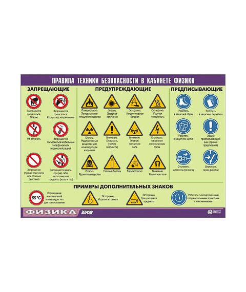 Наличие товара Таблица демонстрационная "Правила техники безопасности в кабинете физики" (винил 100x140)