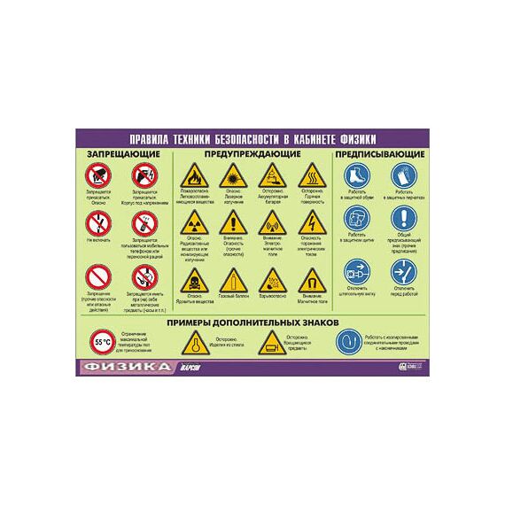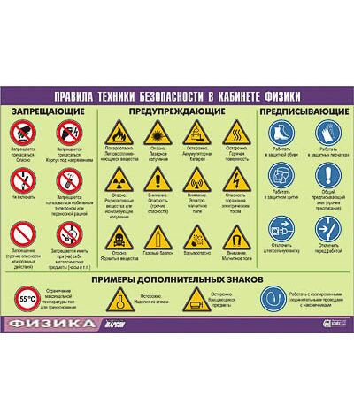 Наличие товара Таблица демонстрационная "Правила техники безопасности в кабинете физики" (винил 70x100)