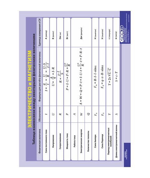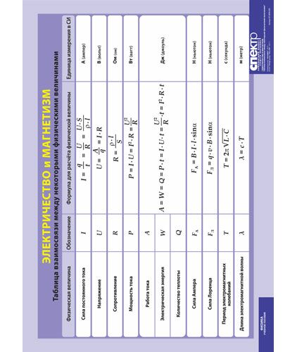 Наличие товара Таблица взаимосвязи между некоторыми физическими величинами. Электричество и магнетизм (100х140)