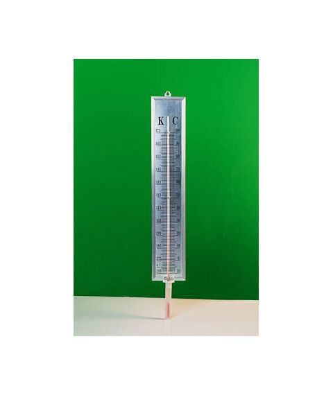 Прибор представляет собой баллон, соединенный с трубкой–капилляром, запаянной сверху. Баллон и часть капилляра заполнены подкрашенной жидкостью, остальное пространство капилляра лишено воздуха. Трубка закреплена на рейке, на которой нанесена шкала в градусах Цельсия и Кельвина. Каждые 10 градусов шкалы оцифрованы. Баллон термометра расположен ниже рейки, что позволяет погружать его в сосуд при выполнении опытов. Для защиты во время хранения от возможных случайных толчков баллон закрыт съемным перфорированным пластмассовым колпачком.
