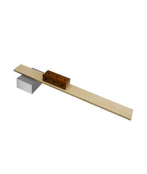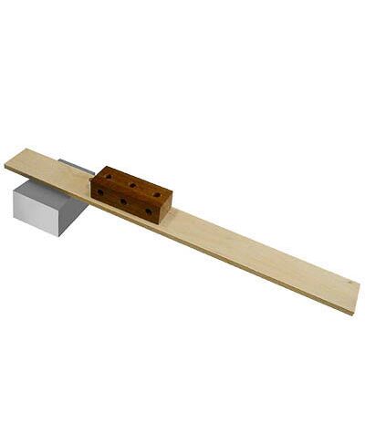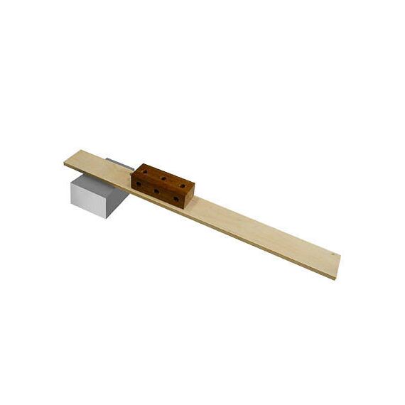 Прибор состоит из линейки и деревянного бруска с петлей на его торце и тремя гнездами для грузов. С помощью этого прибора можно измерить коэффициент трения покоя, коэффициент трения скольжения дерева по дереву, КПД наклонной плоскости, вычислить механическую работу, выяснить зависимость коэффициента трения от массы груза и площади поверхности.