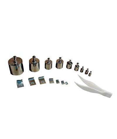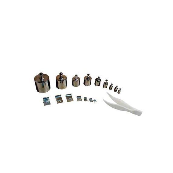 В состав набора входят следующие гири: 100 г - 1 шт., 50 г - 1 шт., 20 г - 2 шт., 10 г - 1 шт., 5 г - 1 шт., 2 г - 2 шт., 1 г - 1 шт., 500 мг - 1 шт., 200 мг - 2 шт., 100 мг - 1 шт., 50 мг - 1 шт., 20 мг - 2 шт., 10 мг - 1 шт.
