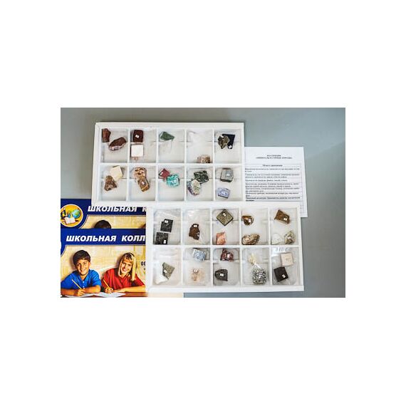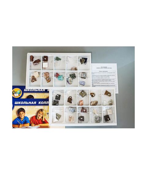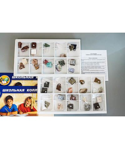 Коллекция предназначена для демонстрации на уроках неорганической химии и географии.