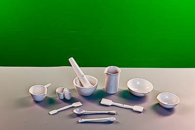 Комплектность: кастрюля с ручкой №1 – 1 шт., ложка №1 – 1 шт., ложка №2 – 1 шт., пест №3 – 1 шт., стакан №3 – 1 шт., Ступка №3 – 1 шт., тигель №3 – 1 шт., крышка к тиглю №3 – 1 шт., чашка выпарительная №2 – 1 шт., чашка выпарительная №3 – 1 шт., шпатель № 1 – 1 шт., шпатель № 2 – 1 шт. Изготовлены из фарфора