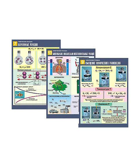 Описание Комплект таблиц по химии дем. "Химические реакции" (14 табл.,формат А1, ламинир.)