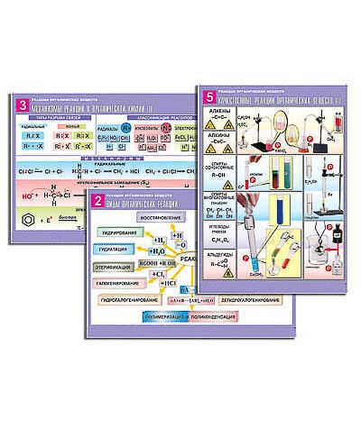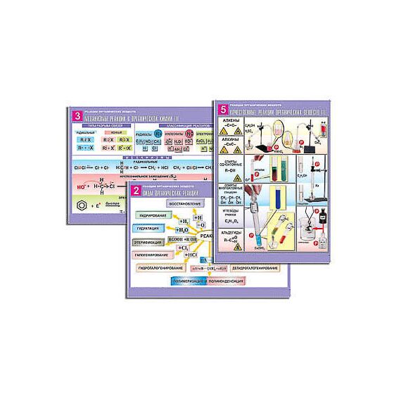 Комплект таблиц по орг. химии "Реакции органических веществ" (6 табл., формат А1, лам.)