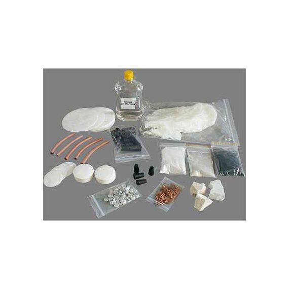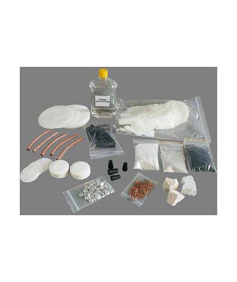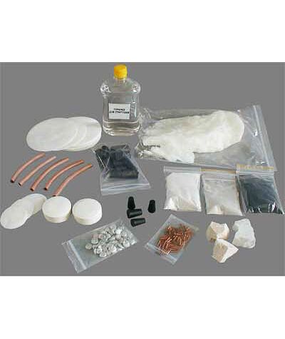 Комплектность: алюминий гранулированный - 0,05 кг, кальция карбид - 0,05 кг, кальция карбонат (мраморная крошка) - 0,5 кг, крахмал картофельный - 0,05 кг, медь - 0,05 кг, парафин - 0,5 кг, уголь активированный - 0,05 кг, горючее для спиртовок - 0,66 л, пробки резиновые - 15 шт., трубки резиновые - 5 шт., фильтры Ø 5,5 см (уп.) - 2 шт., фильтры Ø 12,5 см (уп.) - 1 шт.
