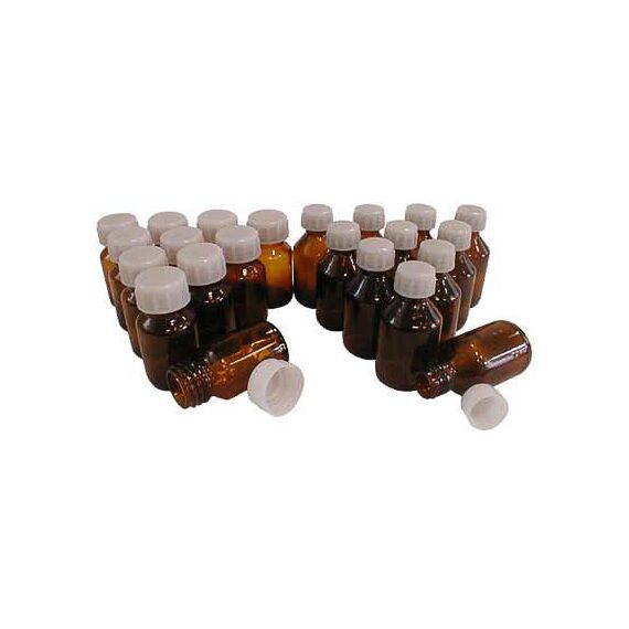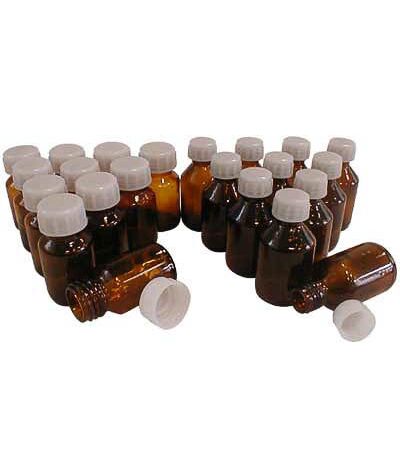 Флаконы и банки снабжены винтовыми пластиковыми крышками.