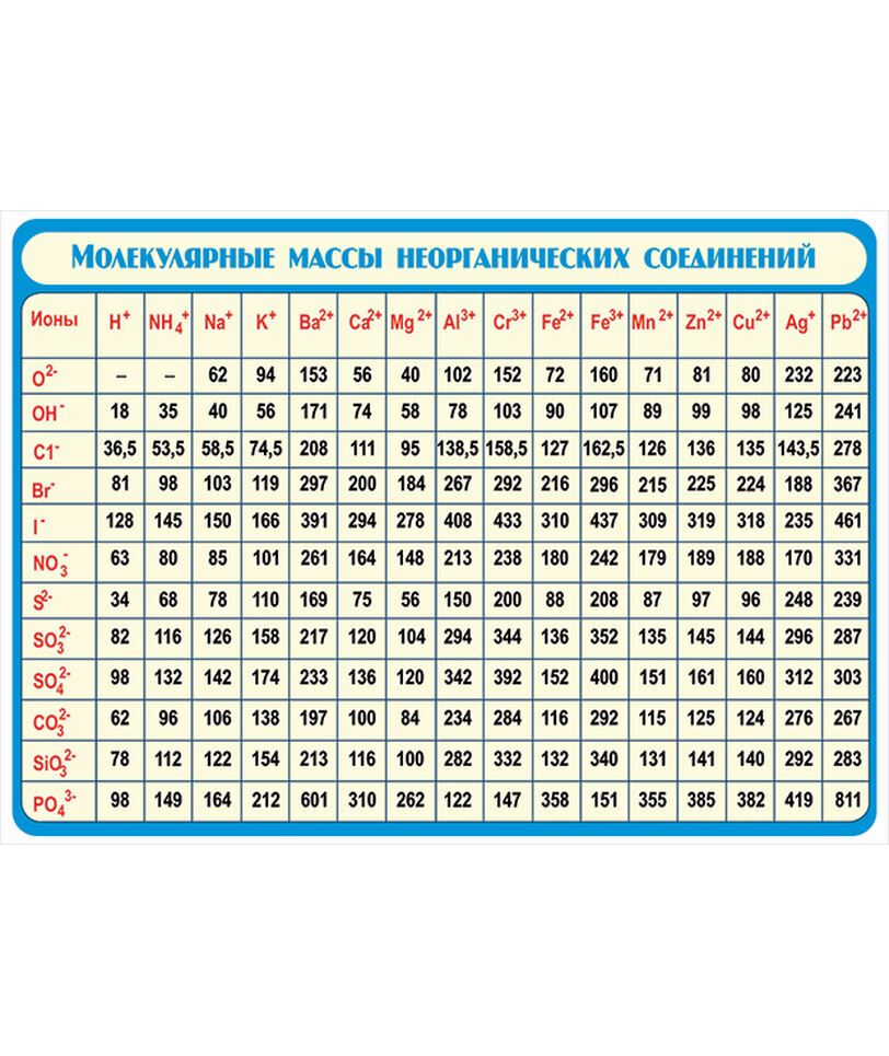 Наличие товара Относительные молекулярные массы неорганических веществ (винил)