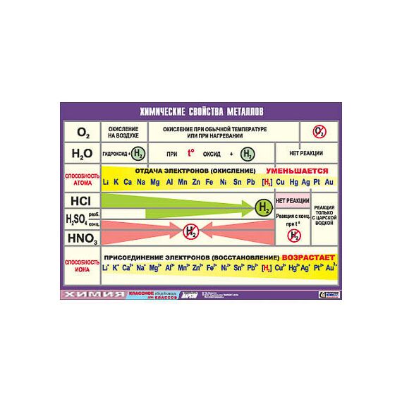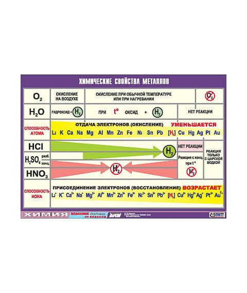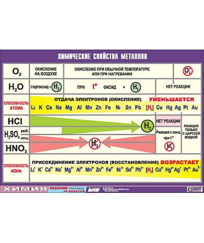 Наличие товара Таблица демонстрационная "Химические свойства металлов" (винил 70x100)