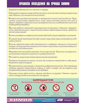 Описание Таблица демонстрационная "Правила поведения на уроках химии" (винил 100х140)
