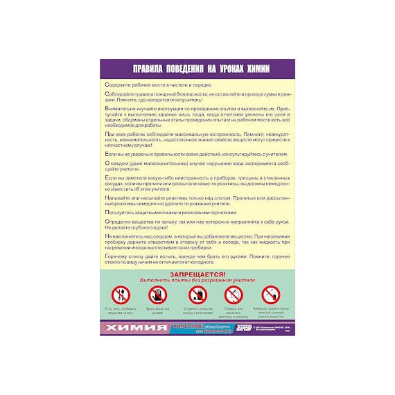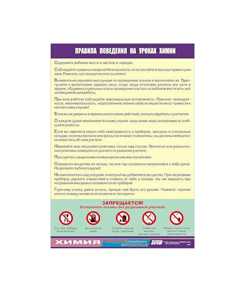 Наличие товара Таблица демонстрационная "Правила поведения на уроках химии" (винил 100х140)