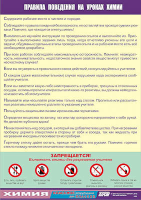 Таблица демонстрационная "Правила поведения на уроках химии" (винил 70х100)