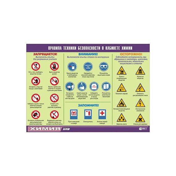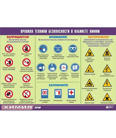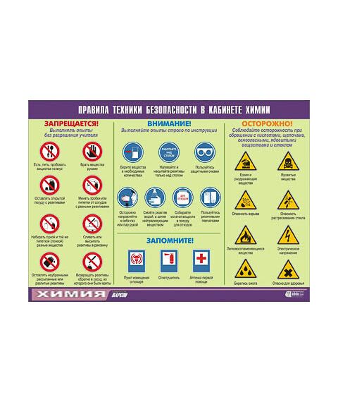 Наличие товара Таблица демонстрационная "Правила техники безопасности в кабинете химии" (винил 70х100)