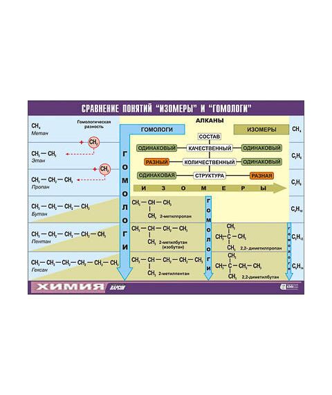 Таблица демонстрационная "Сравнение понятий изомер и гомолог" (винил 70x100)
