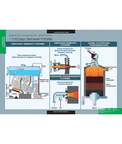 Способы сжигания топлива. Производство серной кислоты (1). Производство серной кислоты (2). Производство аммиака. Производство азотной кислоты. Производство аммиачной селитры. Силикатная промышленность. Электролиз хлорида натрия. Получение алюминия. Химия доменного процесса. Производство чугуна. Конвертер с кислородным дутьем. Выплавка стали в электропечи. Выплавка стали в электронно-лучевой печи. Обогащение руд флотацией. Обжиг известняка. Производства ацетилена. Переработка нефти.