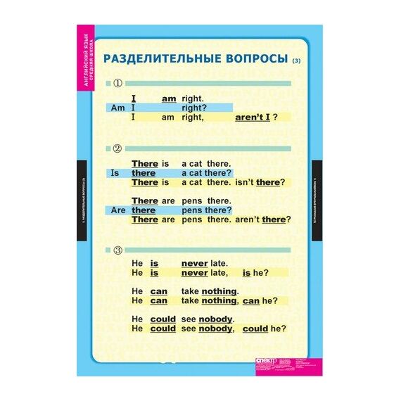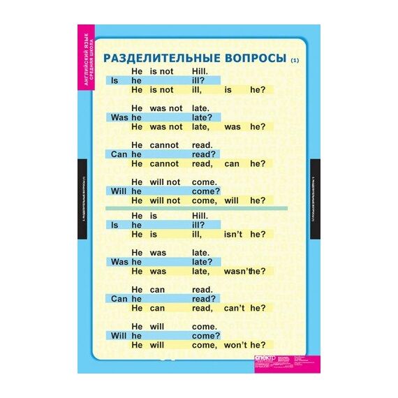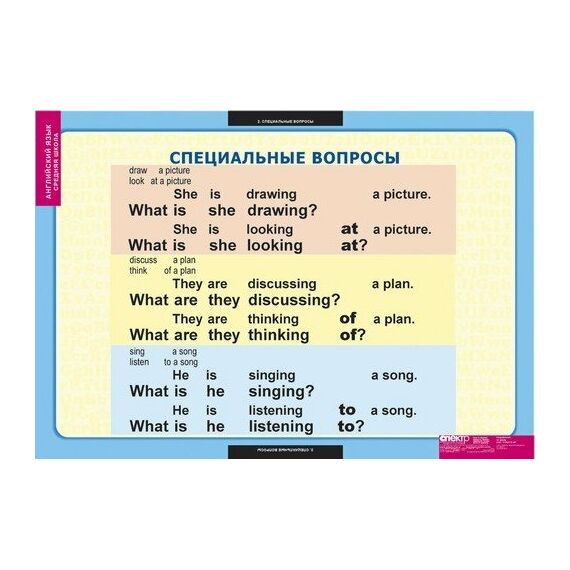 Формат 68х98 см. Учебный альбом из 6 листов. Типы вопросов. Специальные вопросы. Разделительные вопросы 1. Разделительные вопросы 2. Разделительные вопросы 3. Особенности перевода предложений.