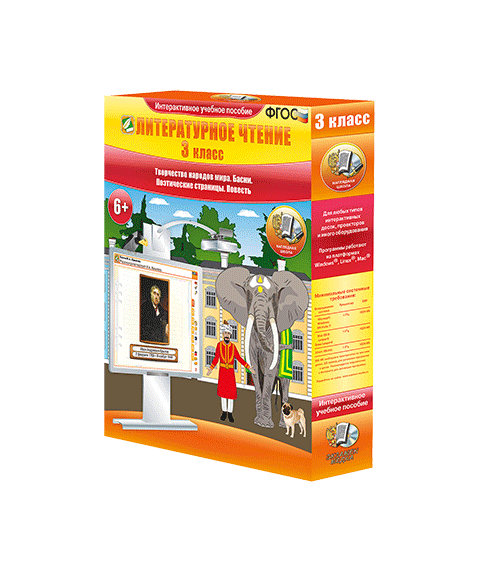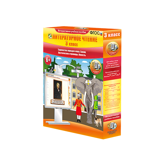Пособие можно использовать с любыми учебниками, входящими в Федеральный перечень. Интерактивное учебное пособие «Литературное чтение 3 класс. Творчество народов мира. Басни. Поэтические страницы. Повесть» содержит все темы годового учебного курса по литературному чтению. В каждую тему включены тестовые контрольные задания, интерактивные упражнения на усвоение теоретического материала и на отработку практических навыков.