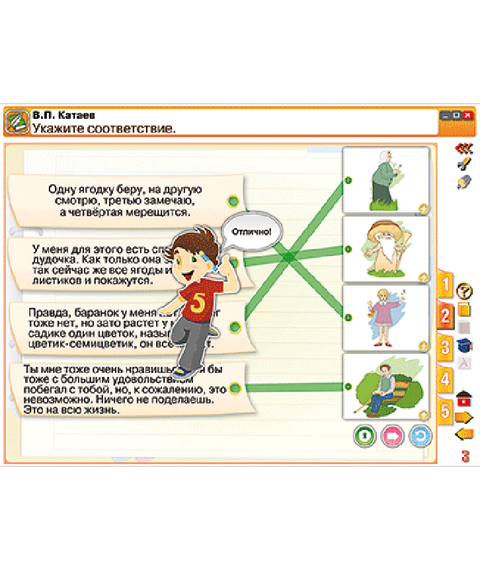 В пособии использованы следующие медиаобъекты: анимации, аудиосопровождение заданий, интерактивные схемы, установление соответствия (соединение), последовательности, обобщение, классификация объектов, кроссворды и загадки, озвученный литературный справочник о понятиях и авторах литературных произведений. Отличительной особенностью интерактивных учебных пособий «Литературное чтение» является создание собственной тематической последовательности курса с возможностью включить дополнительные медиаобъекты в структуру самого пособия. Пособия помогут педагогу организовать работу на уроке с учётом особенностей и возможностей класса.