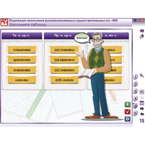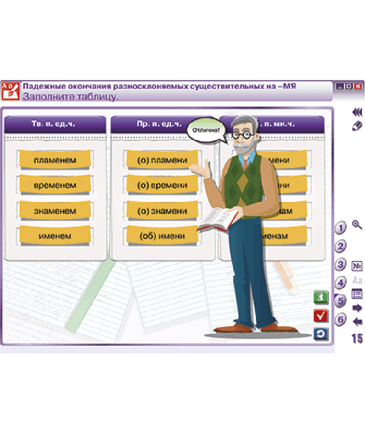 Пособие можно использовать с любыми учебниками, входящими в Федеральный перечень. Интерактивное учебное пособие «Наглядный русский язык. 5 класс» содержит все темы годового учебного курса по русскому языку. В каждую тему включены тестовые контрольные задания, интерактивные упражнения на усвоение теоретического материала и на отработку практических навыков. В пособии использованы медиаобъекты: аудиосопровождение изложений, анимации, фонетический разбор, разбор слова по составу, графическое выделение членов предложения, интерактивные схемы с текстовыми наполнениями, упражнения на реконструкцию текста, заполнение пропусков, установление соответствия (соединение), последовательности, обобщение, нахождение ошибок, множественный выбор. Отличительной особенностью интерактивных учебных пособий «Русский язык» является создание собственной тематической последовательности курса с возможностью включить дополнительные медиаобъекты в структуру самого пособия. Пособия помогут педагогу организовать работу на уроке с учётом особенностей и возможностей класса.