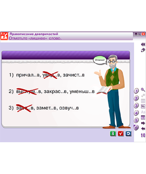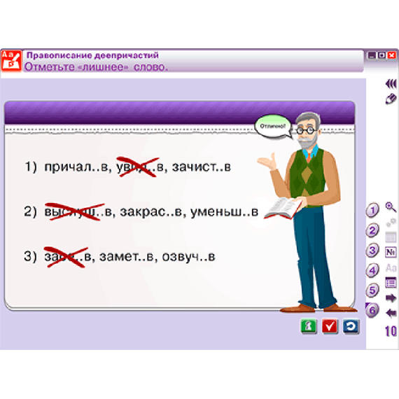 Пособие можно использовать с любыми учебниками, входящими в Федеральный перечень. Интерактивное учебное пособие «Наглядный русский язык. 7 класс» содержит все темы годового учебного курса по русскому языку. В каждую тему включены тестовые контрольные задания, интерактивные упражнения на усвоение теоретического материала и на отработку практических навыков. В пособии использованы медиаобъекты: аудиосопровождение изложений, анимации, фонетический разбор, разбор слова по составу, графическое выделение членов предложения, интерактивные схемы с текстовыми наполнениями, упражнения на реконструкцию текста, заполнение пропусков, установление соответствия (соединение), последовательности, обобщение, нахождение ошибок, множественный выбор. Отличительной особенностью интерактивных учебных пособий «Русский язык» является создание собственной тематической последовательности курса с возможностью включить дополнительные медиаобъекты в структуру самого пособия. Пособия помогут педагогу организовать работу на уроке с учётом особенностей и возможностей класса.