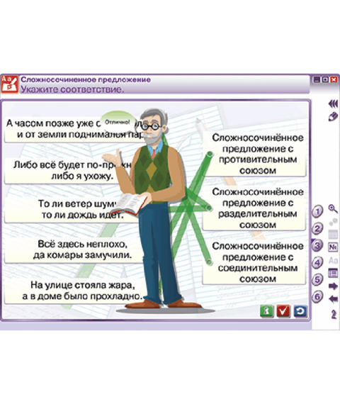 Пособие можно использовать с любыми учебниками, входящими в Федеральный перечень. Интерактивное учебное пособие «Наглядный русский язык. 9 класс» содержит все темы годового учебного курса по русскому языку. В каждую тему включены тестовые контрольные задания, интерактивные упражнения на усвоение теоретического материала и на отработку практических навыков. В пособии использованы медиаобъекты: аудиосопровождение изложений, анимации, фонетический разбор, разбор слова по составу, графическое выделение членов предложения, интерактивные схемы с текстовыми наполнениями, упражнения на реконструкцию текста, заполнение пропусков, установление соответствия (соединение), последовательности, обобщение, нахождение ошибок, множественный выбор. Отличительной особенностью интерактивных учебных пособий «Русский язык» является создание собственной тематической последовательности курса с возможностью включить дополнительные медиаобъекты в структуру самого пособия. Пособия помогут педагогу организовать работу на уроке с учётом особенностей и возможностей класса.