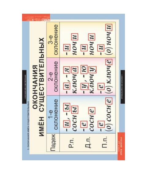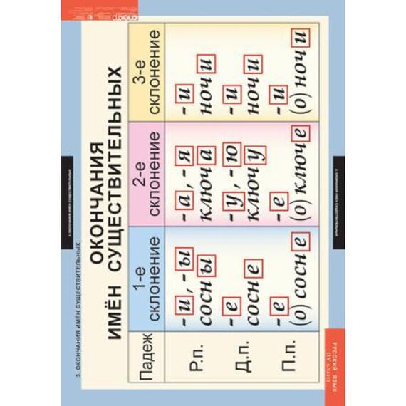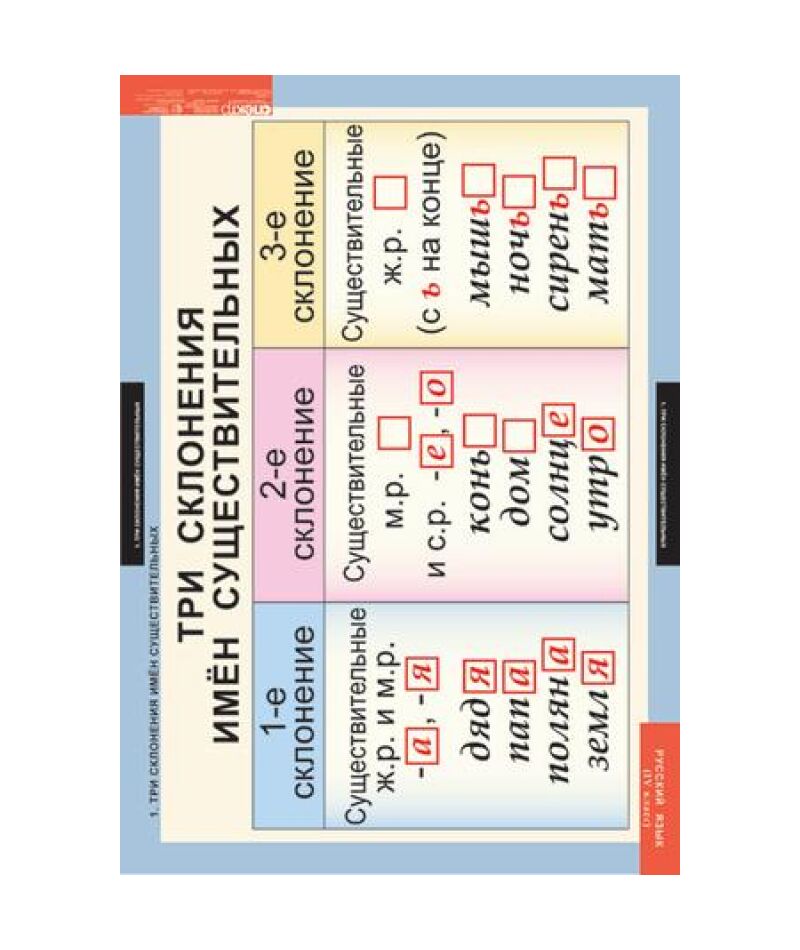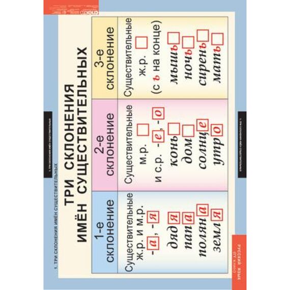- Три склонения имен существительных.