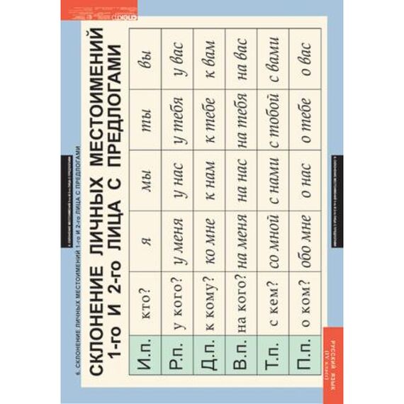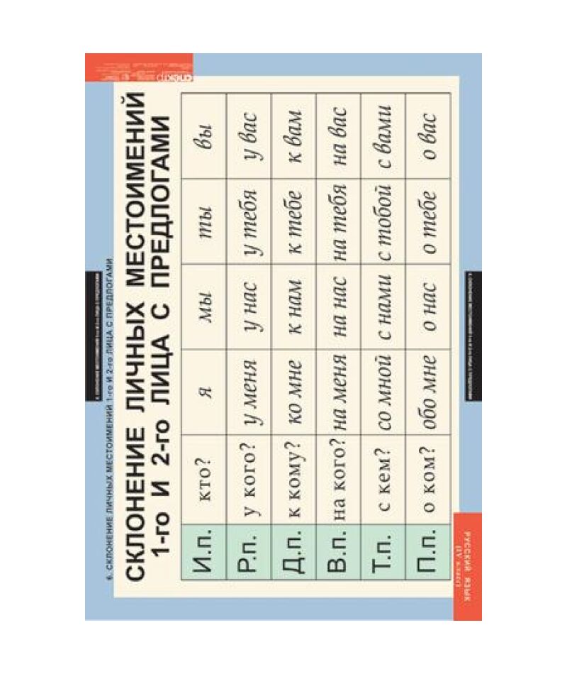 - Склонение личных местоимений 1-го и 2-го лица с предлогами.